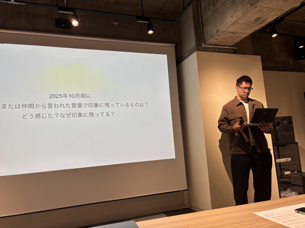 一人ずつ自分の言葉で意気込みを語る姿に、会場全体から自然と温かい拍手が起こり、既存社員にも共に働く仲間を支える責任を再認識させられる瞬間でした。